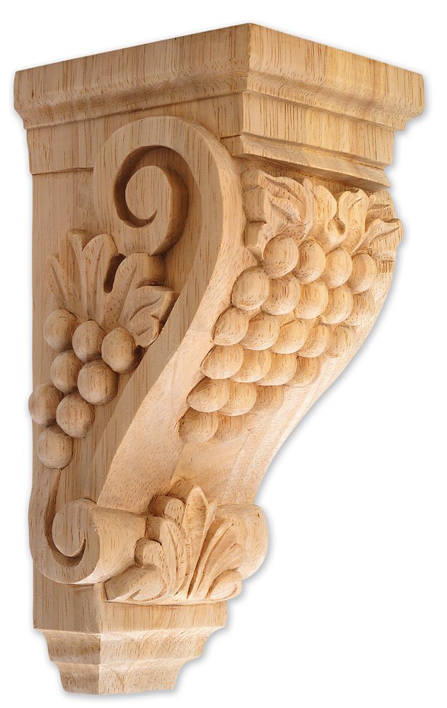 Style Corbel – Grape Wood Species Alder, Ash, Beech, Birch, Cherry, Hickory, Hard Maple, Mahogany, Poplar, Red Oak, Sapele, Soft Maple, Walnut, White Oak Size 4-3/4″ x 5″ x 9-1/2″. Certain patterns are available with your any requirements according to your special sizes. Call Huqcee for more information.