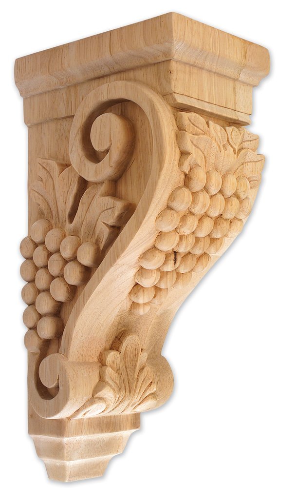 Style Corbel – Grape Wood Species Alder, Ash, Beech, Birch, Cherry, Hickory, Hard Maple, Mahogany, Poplar, Red Oak, Sapele, Soft Maple, Walnut, White Oak Size 5″ x 7-1/2 ” x 14″. Certain patterns are available with your any requirements according to your special sizes. Call Huqcee for more information.