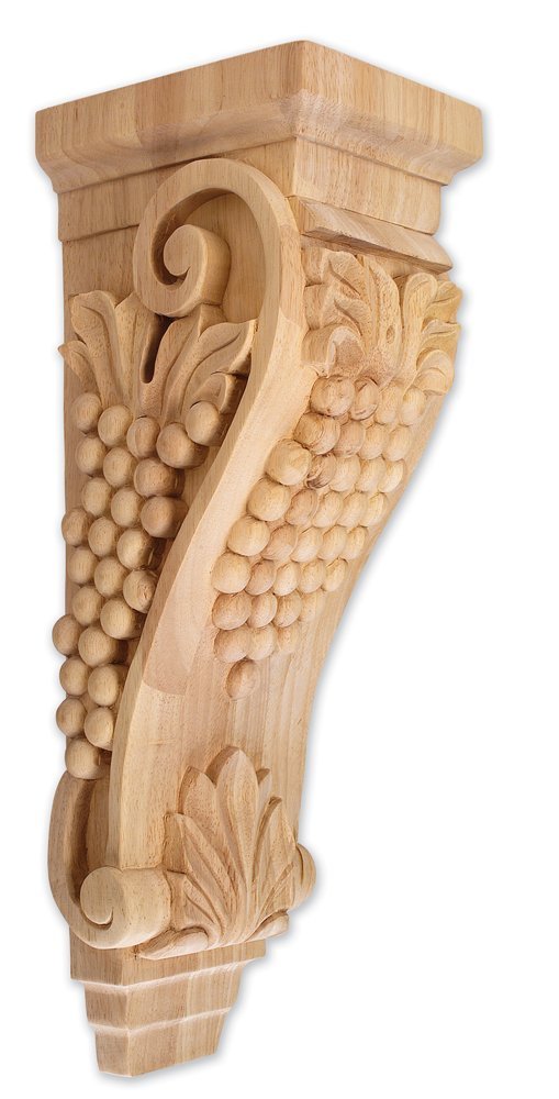 Style Corbel – Grape Wood Species Alder, Ash, Beech, Birch, Cherry, Hickory, Hard Maple, Mahogany, Poplar, Red Oak, Sapele, Soft Maple, Walnut, White Oak Size 6-3/4″ x 7-5/8″ x 22″. Certain patterns are available with your any requirements according to your special sizes. Call Huqcee for more information.