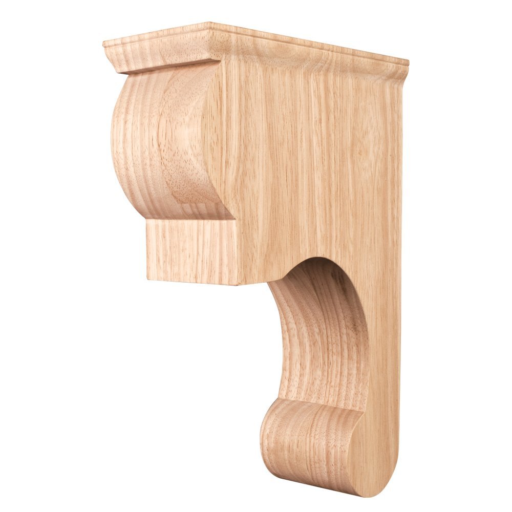 Style Corbels – Traditional Wood Species Alder, Ash, Beech, Birch, Cherry, Hickory, Hard Maple, Mahogany, Poplar, Red Oak, Sapele, Soft Maple, Walnut, White Oak Size 3-1/2″ x 8″ x 11-13/16″. Certain patterns are available with your any requirements according to your special sizes. Call Huqcee for more information.