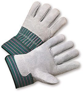 Style Split Leather Palm Glove, 3/4 Leather Back w/Safety Cuff Split leather palm, and split leather that covers 3/4 of the back of the glove. Other features are a shirred elastic back, pull, continuous thumb, gunn cut and 2-1/2″ safety cuff. Size Large Uses Material Handling, Lumber Applications, Assembly, Construction, Fabricating, Landscaping, Maintenance, Metal Working, Mining, Sanitation, Farming, Iron and Steel Work, General Purpose.